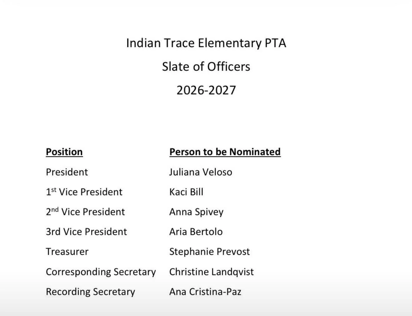 Indian Trace Elementary 2025-2026 PTA