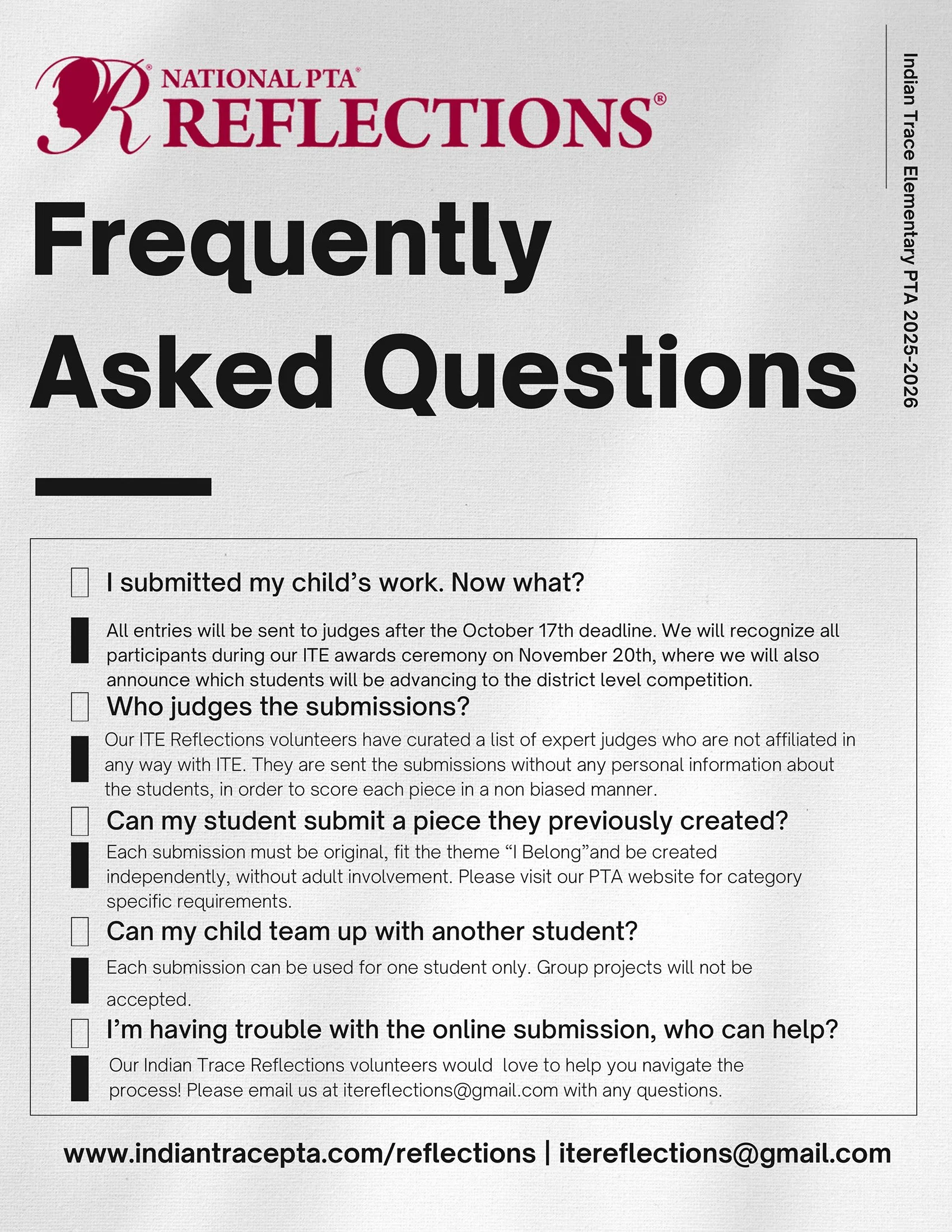 Submit your artwork and let’s put Indian Trace Elementary on the Reflections map once again!